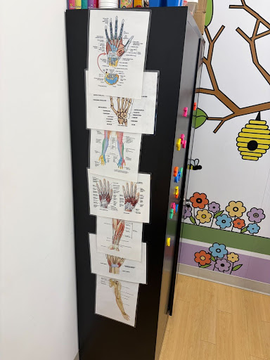 I also worked with a post-stroke patient, which really confirmed my interest in neurological rehab. The physical therapist asked me to analyze the patient’s gait, and I noticed ankle inversion along with hip and knee weakness. Then I was asked from my perspective what exercises I would recommend; eversion and hip-strengthening exercises. Some days focused more on technical skills like learning hip, ankle, and thumb manipulations, documentation/charting, and how insurance processes work. I even spent time at the front desk seeing how scheduling and patient intake happen. It reminded me how many moving pieces exist behind the scenes to support patient care; everyone works together to have a good flow. I had the chance to shadow both speech pathology and occupational therapy as well. Observing a speech pathologist's work opened my eyes to communication therapy strategies, I learned they also work with brain injuries and swallowing disorders which was something I hadn’t realized before. Shadowing occupational therapy gave me insight into wrist anatomy, hand pressure points, stretches, and specialized equipment they use to help patients regain function.