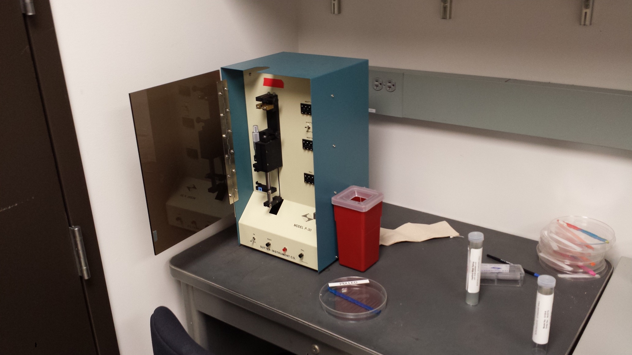 Joe also showed me the machine (pictured above) they use to pull the glass needles we use for microinjection of constructs into Xenopus oocytes. The needles need to be a certain length which means we can’t just use a Bunsen burner to pull the needles by hand, like our instructors in organic chemistry lab at Cornell taught us to. It takes much longer to position everything correctly, but the needles we pull are identical and are more likely to work in the injection process than if we used another method to make these needles. Joe also showed me how the Restricition Enzyme Mediated Integration (REMI) reaction worked and may let me prepare H33 in next week’s injection. In REMI reactions, the biggest potential for failure (which you won’t be aware of until about a week later after you screen for your construct) involves the very delicate and volatile sperm nuclei we work with. If you’re not careful, the nuclei will be sheared in the process of pipetting and your tadpoles will not be fertilized in the first place, or they will not express your construct (both of which will cause more frustration than any person should experience).
