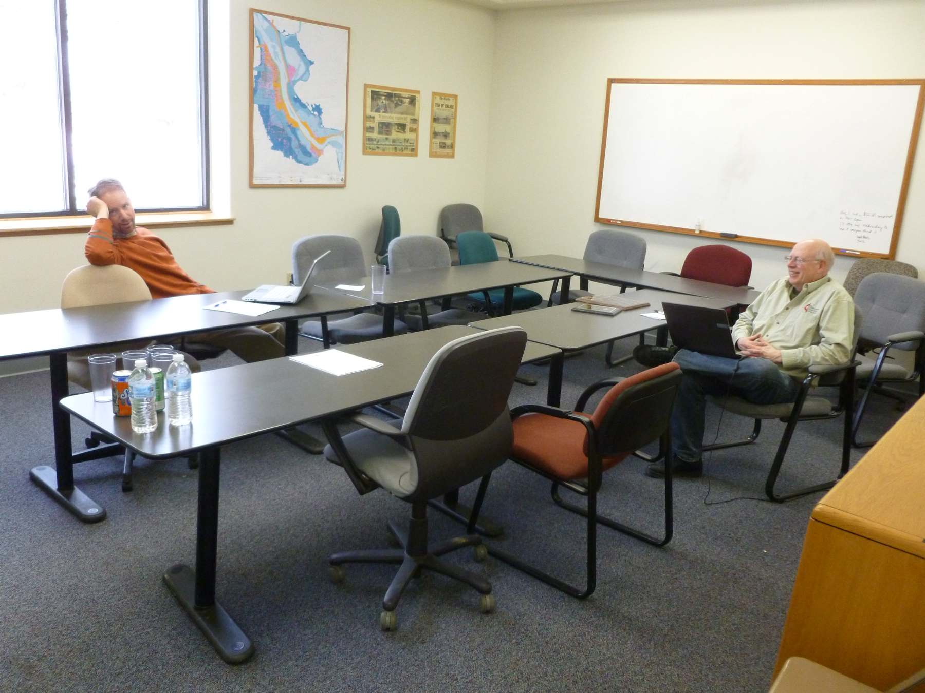 This is Clint (executive co-director; in the orange) and Jerry (neighborhood investment coordinator) allowing me to interrupt a meeting in the spacious, sunny meeting room. I appreciate a lot that the office is a dynamic space; people are always wandering around, asking each other questions and having small impromptu meetings. I hear that there are some offices where people will email each other questions instead of walking five feet to talk to them. That sounds like actually the worst thing ever. Why would I want MORE emails in my life?