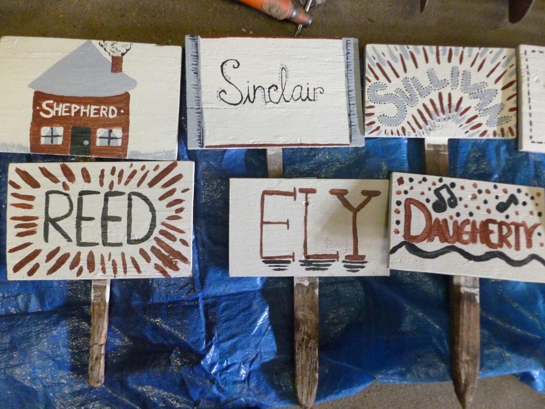 This past week we had a group of AmeriCorps NCCCs come in to do their introductory team-building assignment with us. They were awesome. They built all sorts of things (cold frames, mini greenhouses), labeled all the shelves in the warehouse, and painted these incredibly wonderful signs. One of our plans for the Farm this growing season is to create sponsorship opportunities for each plot, so that companies/individuals can sponsor a plot for a year and get their name on it. Because these names are going to change every year, though, the plots will also need permanent names for internal use. The NCCCs researched famous figures from Cedar Rapids’ history and then painted signs with their last names. They’re SO COOL. Did you know the inventor of the trampoline was a Cedar Rapids resident? Bet you didn’t.