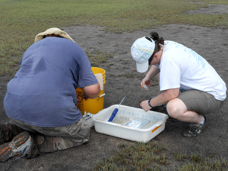 In addition to cleaning tiles and analyzing samples, I went to the field with Tracy and Susan on Tuesday – the only day it didn’t rain- to collect the water samples which were set out months ago to analyze sulfates and nutrients in the water. We deployed new sample collectors after we collected the old ones. It only took two and a half hours, but the repetitive bending down and getting up made my legs sore for the next two days. It was definitely a good workout that tells me I need more exercise. Another noteworthy thing is that after Tracy taught me how to make different, important graphs, Erik – my other mentor – discussed with me about the current and future schedule and the detailed scientific aspects about the project. We talked about things such as whether the accretion of the sediments is caused by biological activity, the wind, or the tides and how to evaluate the impacts of plant density and elevation on sediment accumulation. It was a good meeting. Of course, as with all meetings I’ve had with my college advisor, I am left with more work and more graphs to make. Patterns can only be found through repetitive trials.