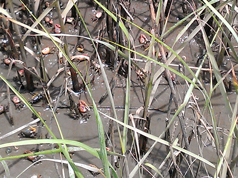 This week, I also spotted some more pleasant scenes of the wildlife here: a turtle crossing the road; a baby alligator out for a stroll; a mother turkey and her four poults. My favorite of all the wildlife spotting this week, however, were the hundreds of thousands of crabs that scuttled away as I walked on the board path in the marshes.