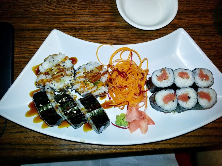 Tuesday evening my friends and I sent out for sushi. I had never had it before and I don’t know if I will ever have it again 🙂