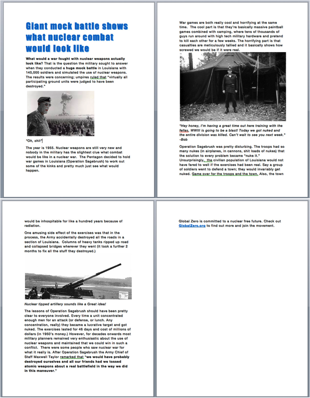 2. Historical / educational photo essay with anti-nuke message