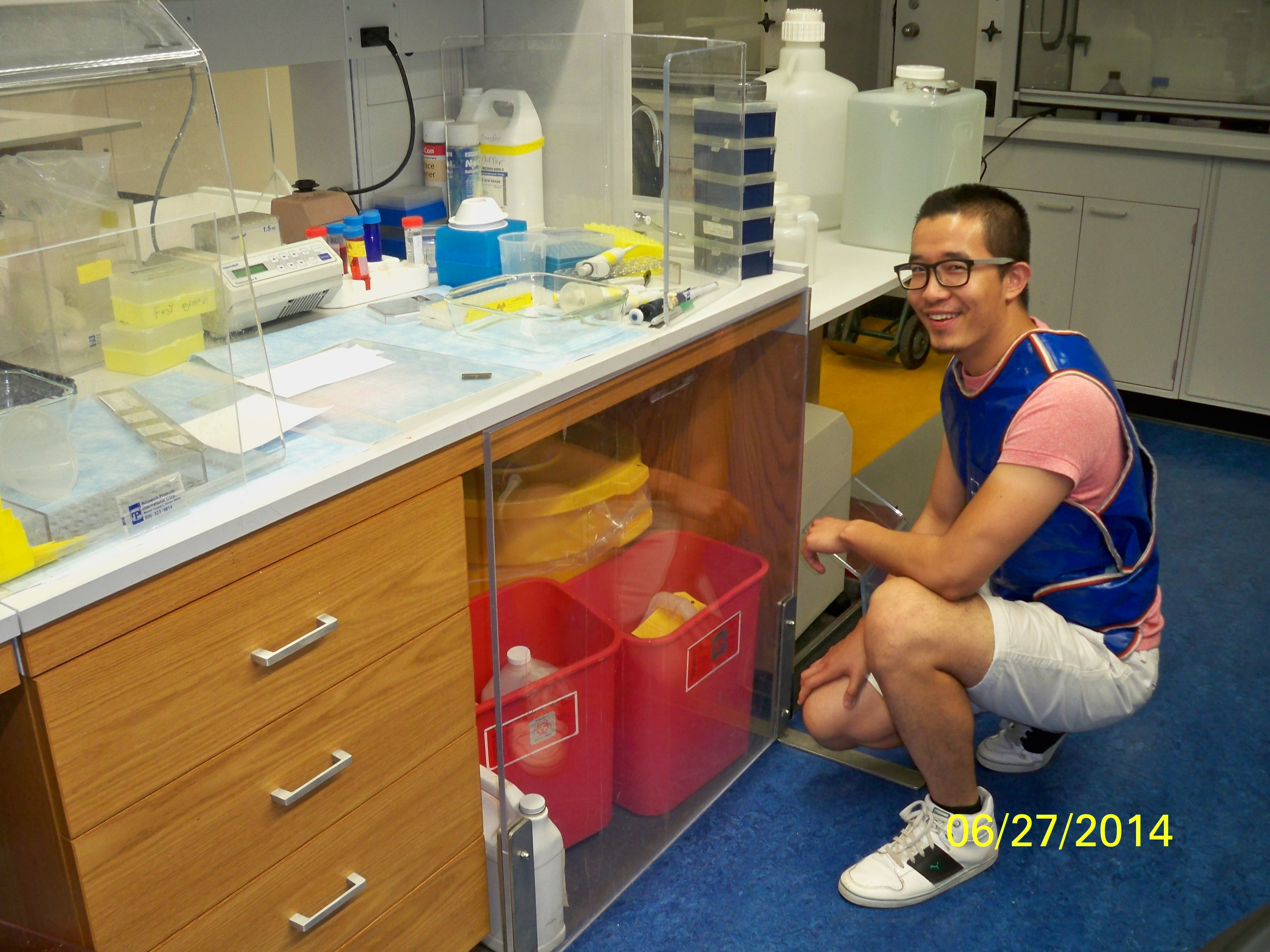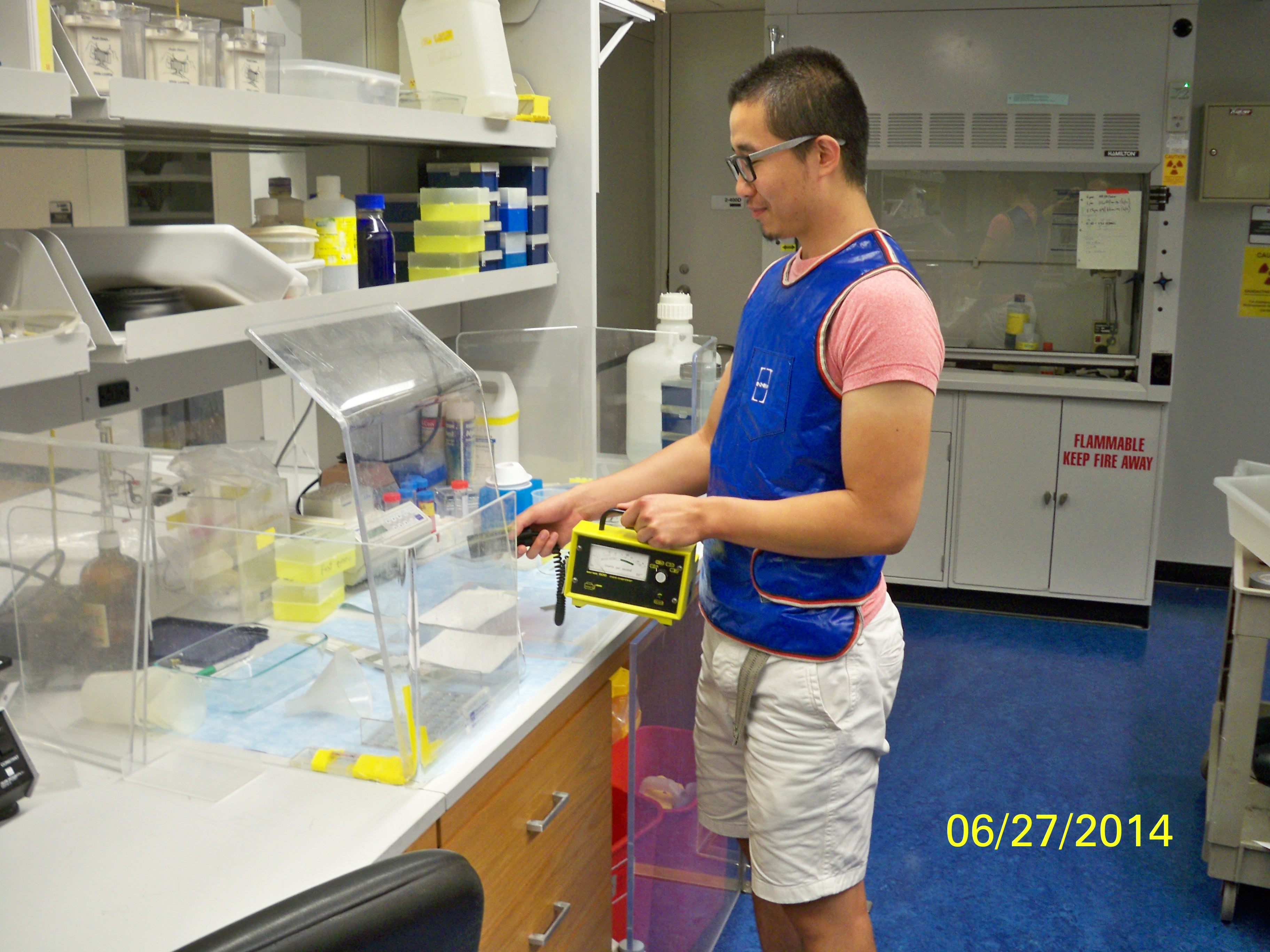 My birthday was also this week and the research scientist in our lab, Ron, made me a cake and I had a wonderful day. I also watched Ron running some samples for Western blot with 32P label, which was radioactive. The photos below showed me wearing the radioactive vest.