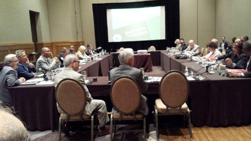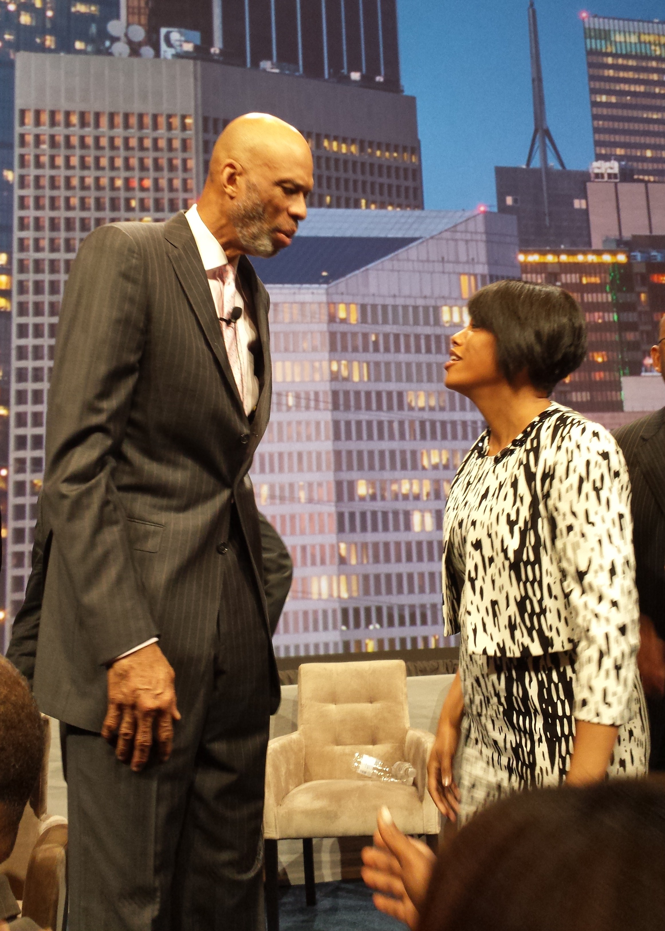 Alright, I’ll stop talking about it! After the Exports and Ports meeting, there was the final plenary session, where voting took place. Before voting, there was a panel with a discussion on Sports and Race, featuring Roland Martin (journalist, TV host), Kareem Abdul-Jabbar, Michael Irvin (former Cowboys player), and USCM President Kevin Johnson, a former NBA player. That was very interesting and fun to listen to; all of the panelists were African-American, and there were definitely disagreements among them about how race is and should be handled in the context of sports and outside of sports. Something interesting that Martin said was that we assume someone is either racist, or not racist. We don’t account for (what probably most accurately depicts reality) racism being a scale, and people often falling somewhere along that scale instead of being completely racist or completely without any type of prejudice.