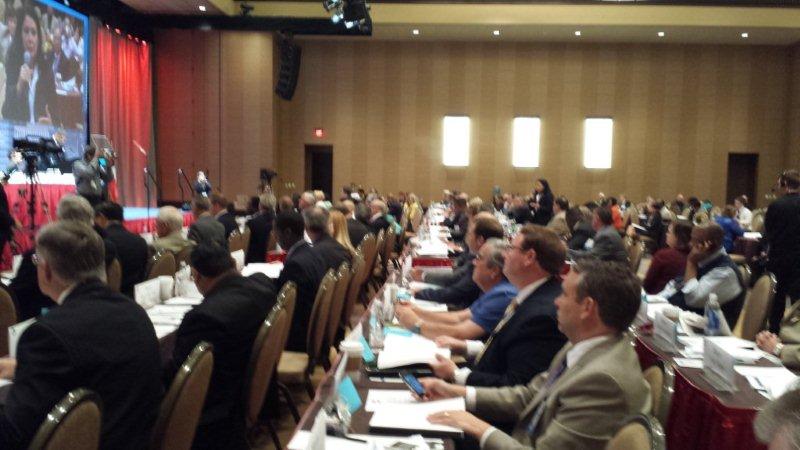 After the panel, the mayors voted on resolutions. Gene and Gail, two USCM staffers, were in charge of putting together these thick booklets that held all resolutions that had passed through committees to be voted on. Each mayor received a copy. President Johnson presided over the session, and most resolutions passed anonymously without discussion. There were about 6 or 7 that were pulled out for discussion by various mayors who had some type of concern or wanted to hear more. I had to leave before deliberation happened, as our DollarWi$e workshop was immediately after the business session, but I was told that all bills that passed through committee passed on the floor.