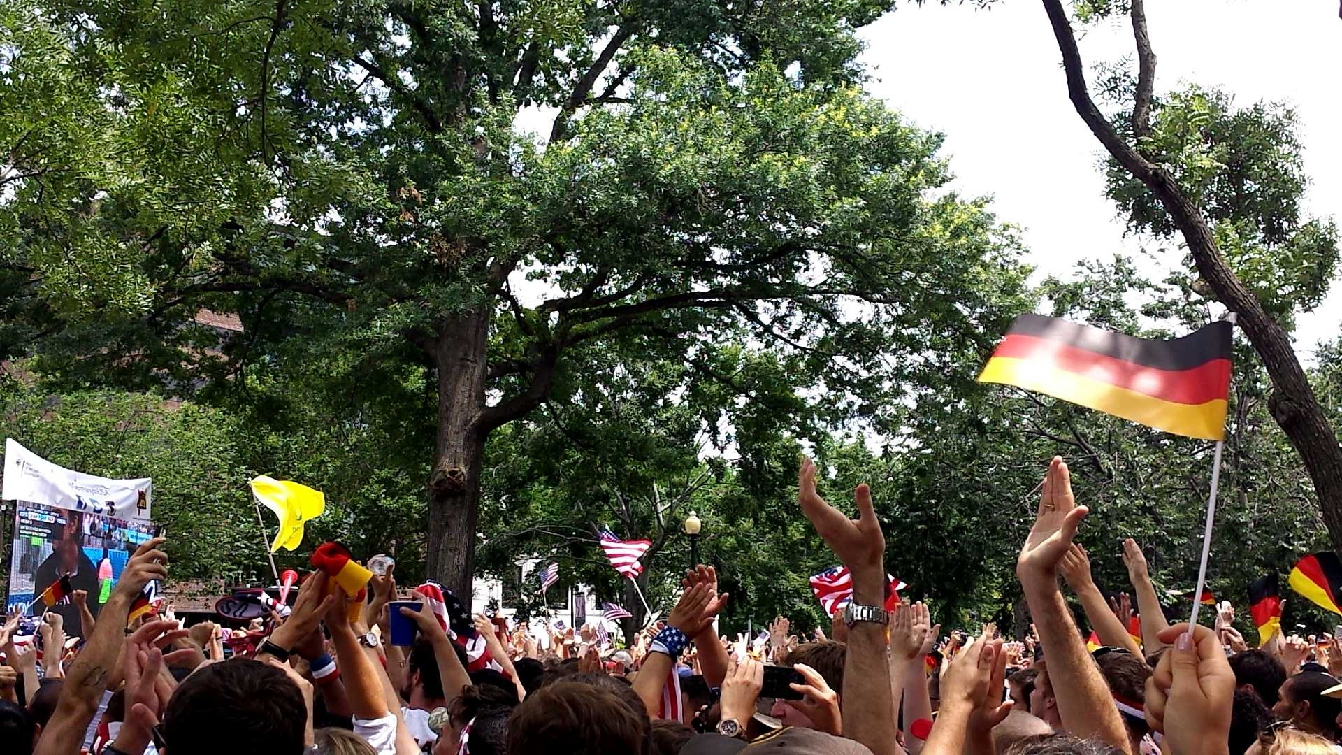 More newspaper article and income inequality! I found it rather difficult to focus on Thursday morning, as the US Soccer game was at noon and Dave graciously allowed me to leave and go watch. Parker and I went to Dupont Circle, where the German Embassy had set up huge screens for people to watch. The circle was crowded; we were standing body-to-body, a giant pool of cheering sweat. The US team didn’t score a goal, which may have been a good thing because we probably would have trampled someone in the midst of our celebration! There were several people cheering on Germany there as well, but the atmosphere was not unfriendly – both Germany and the US were pretty sure to make it in, so the stress level wasn’t too high. It was a great way to watch the game!