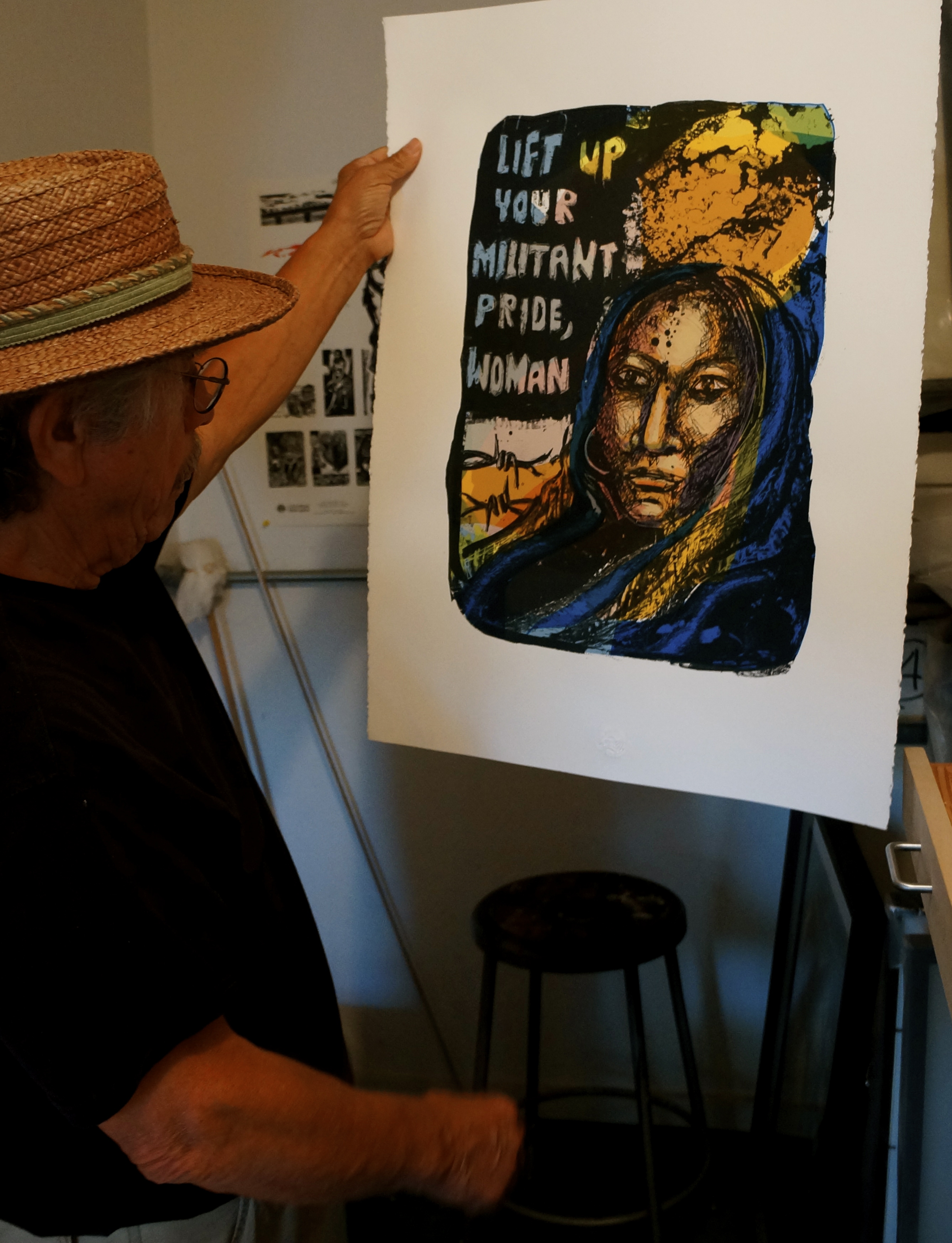 I took a bus to Sacramento to visit Malaquias Montoya at the end of the third week. I feel he is one of the figures that made Chicano art possible. Before the interview, he showed me around his organization Taller Arte del Nuevo Amanecer that also serves the community. Malaquias and his son, Maceo Montoya teach printmaking for a high school and some college students. As they continue to do their own art, their mission is also to teach the new generation about printmaking and Chicano art. In his home, the walls were covered with his art and his son’s art! I felt welcome as he told me stories from the past surrounded by this truly beautiful art. Malaquias Montoya may have a great reputation as an artist, but he never lost his sense of humanity. He is surprisingly humble. My comfort was only increased as he spoke in English and Spanish! His never-ending passion for the community showed in his tone of voice. Malaquias’s art is meant to serve as a voice for the voiceless by addressing many issues such as injustice, empowerment, and international causes. After our interview, he told me that he was glad that I was doing this research about Chicano art, because he feels it needs to be documented in the field of art history. I hope my interviews will contribute to the field and bring recognition of the contributions of these artists to the Midwest.