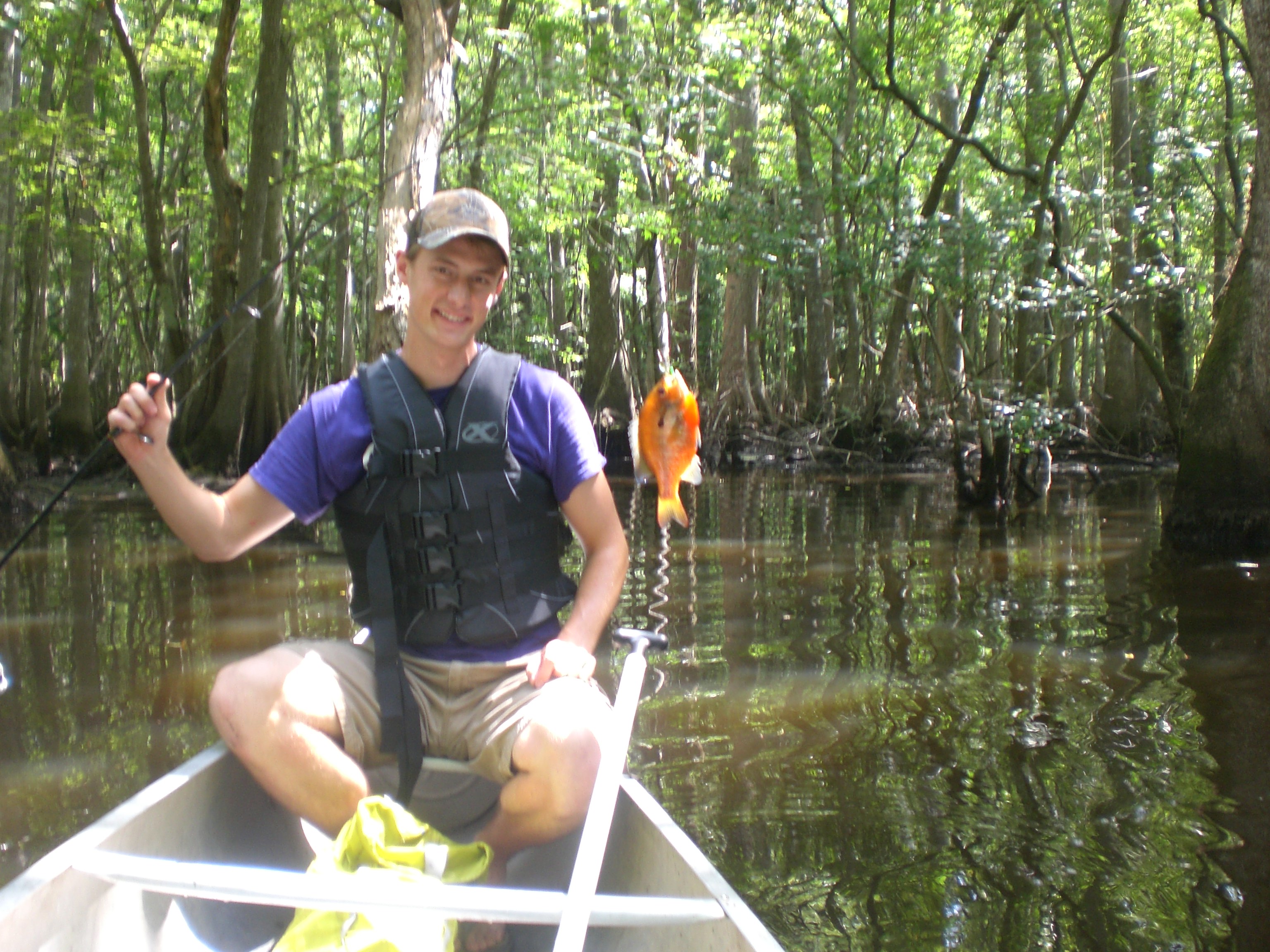 The second day, we went on what they call a “swamp stomp,” which is basically a hike through the mud and water of the swamp, to the “Knee Knocker” tree. The Knee Knocker Tree is the biggest known cypress tree on Audubon’s property. I have mentioned it before but Audubon owns about 18,000 acres of the swamp and its tributaries. Needless to say, it was a pretty impressive tree. Its knees were fun to play with because hitting them with a stick produced different unique percussive noises. There is actually a fun video on YouTube from a few years ago of the Audubon SC gang making a music video using the tree’s “knee drums.” If you are interested in watching it, here is the link: http://www.youtube.com/watch?v=LmULJ2cOgmw.