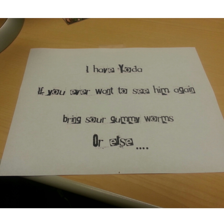 In addition, I worked in Dr. Chang’s office this week that has a bunch of free candy open to anyone. It was hard containing myself from eating all the chocolate. It was funny; someone stole his Yoda and asked for ransom because all the gummy worms ran out.