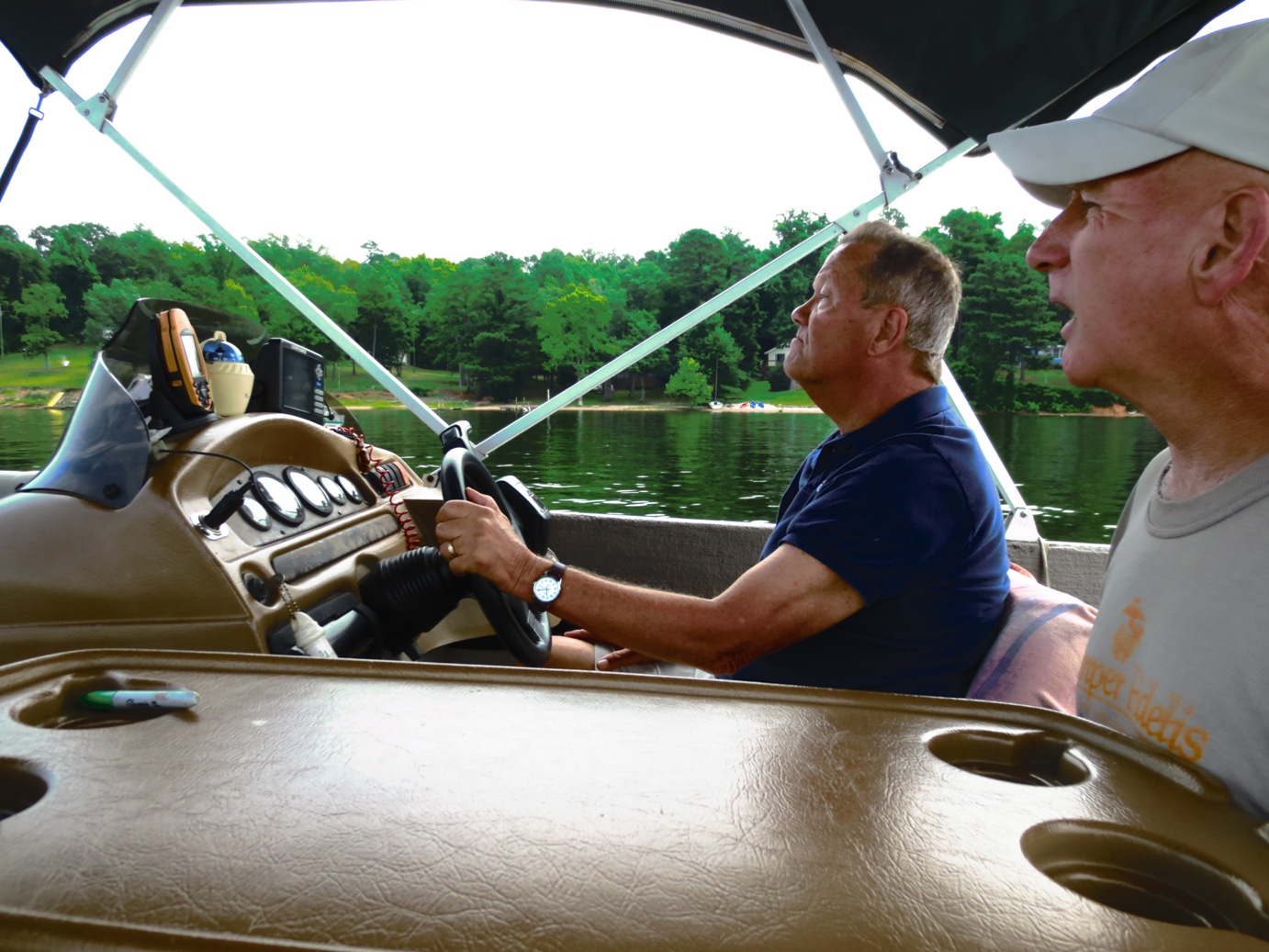 Lake Wateree. “There are no natural lakes in South Carolina,” Dick told me. Dick Foote is a member of the Lake Wateree Waterwatch group, local volunteers who monitor the lake’s water quality and general health and, along the lines, assist Dan in his projects here. Today’s trip to the lake was part of Stephanie’s project; Stephanie La Placa is a rising senior at the University of South Carolina majoring in marine science. It is her second summer working with Dan. Our work included taking YSI measurements at depths of two, four, seven feet and one feet above the bottom, getting water samples and measuring turbidity, which involved identifying at what depth visibility blurs. We visited almost all the major embayments of this long narrow lake, which was formed in 1920 by damming the Wateree River. Though only for a day, meeting with Dick and Dave (on the photo below) was very pleasant, as their attitude showed they truly cared about the lake, and was passionate about what they were doing.