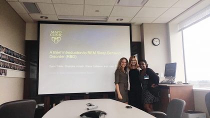 My co-workers Elena, Demi and I were asked to give a presentation to visiting college students from St. Olaf. We gave them a brief introduction on REM sleep behavior disorder and the research that we have been doing all summer. This was very useful in helping me wrap up what I have done and learned thus far, and also practice for the fellows showcase that I will be presenting at in the fall. I loved being able to share my experience and all of the amazing opportunities that have been presented to me. I really have had one of the most incredible 8 weeks of my entire life. I feel that I have learned more about sleep disorders, neurology and the medical field in these short 8 weeks than I ever have in my 21 years of living. I can’t help but be incredibly grateful for the Cornell Fellows program, Dr. St Louis and everyone in his lab for allowing me this adventure.