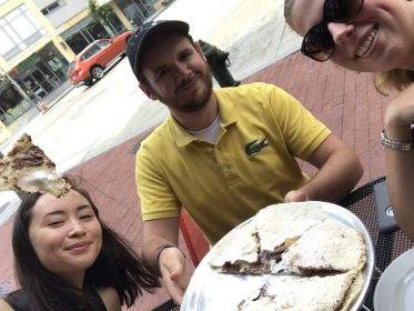 If you’ve been reading Chace’s blog, you’ll have noticed that the “Intern Squad” is a thing that has recently happened over the past couple weeks. Chace, Emily (an intern from Amherst College in Mass.), and I have made an effort to do something every day during our lunch hour. It gets us out of the office (or at least out of our chairs) and gives us a chance to get to know one another outside of the work environment. We’ve played shuffleboard in the common area, gotten donuts for the office, and, most recently, went to the pizza place on the corner to enjoy some Nutella pizza – if you’ve got a sweet tooth, this is certainly a pizza for you!
