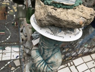 We began Saturday with a train ride into Reading Terminal Market. It is a large indoor market with any variety of shops and stores, and we enjoyed a leisurely lunch of specialty grilled cheese (have you ever had brie cheese and cranberry chutney on toasted bread?) and donuts from a very popular shop. We worked off the food by renting bicycles and riding down the Schuykill River boardwalk. It’s about 26 miles long (we only did about four) and provides a very scenic view of the city. We then visited the Franklin Institute where we got lost in a mirror maze for about 30 minutes (despite it being maybe 20 feet long), and ended up at a delicious Greek restaurant in her old neighborhood for dinner. Sunday, we visited the Magic Gardens – an art installation of various glass pieces in concrete – which was so cool. You could never look at the same thing twice.