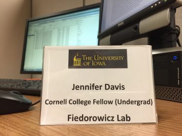 I’ve walked the halls of University of Iowa Hospital and Clinics many times, but on Monday it was different. I was nervous. I wasn’t going to my familiar old haunts, but the wing of the hospital that I hadn’t spent much time in. The wing of the hospital in which I would be contributing to the lab of Dr. Fiedorowicz, neuropsychiatrist. Don’t get me wrong, I was excited, but the nerves outweighed all other feelings. After some searching, I made it to the office, and found my desk with my very own nameplate! That set the tone; it made me feel like I would be a significant member of the team.