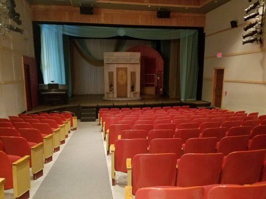 View outside the backdoor of the theater. Featuring the Flume.