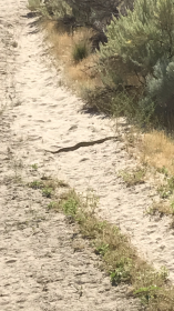 Sadly, I had to leave on the afternoon of the Forth of July. In the morning, though, we went on another trip to the foothills. This time we decided it would be fun to ride the horses on the trails. We had to ride in shifts as people outnumbered the horses. During my rideĀ up to the top of the foothills, we saw something stick out its head and slither across the trail. It was a rattlesnake! Luckily, we saw the snake before the horses did and were able to stop them far enough back. We waited until the snake was across and out of sight, then continued on our way. At the top of the foothills, we switched riders and I hiked back down to the bottom.