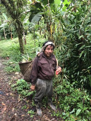 Clemente has spent most of his life working in this chakra, and the innumerable hours he has put into it translate into what any botanist would call a work of art. With a dozen hectares (1 hectare = 100m x 100m) in a large range of altitude, he has arranged everything just-so, but with plenty of strips of natural forest intertwined inside. Yuca, a highly sustainable crop (if not very healthy), is harvested and re-planted here every 4-6 months in four different plots, so that they have a year-round supply. After a couple of re-plantings, the plot lies fallow for 7 years so the forest around it can regrow and the bamboo leaves fall to add nutrients back into the soil.