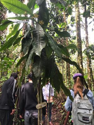 We also learned about the Shuar and Waorani people, who reside around Puyo. They are the two Amazonian groups in Ecuador who are traditionally the most war-like; for that reason, they were never conquered by the Incas or the Spanish. The Waorani are famous for wearing only a string around their waist, and for being the last Amazonians to be in contact with the Western world (communication with them opened in the 1950’s). The Shuar are famous for their poisons, and had a polygamous culture, with one man marrying a woman and all of her sisters. Both, of course, are very knowledgeable about the local plant medicine.