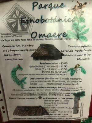 In addition, I went with a group of interns to Omaere Botanical Garden in Puyo, almost two hours away. We had a guide walking with us to tell about the medicinal plants, and I was able to record it all on audio and take notes later.