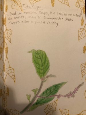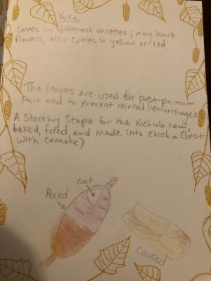 I went to the Amazon on a gut feeling. I knew that there were bounties of herbal knowledge to be found there, but didn’t really know how I would be able to apply it later, in the United States. This internship provided me with the tools to survive (and even thrive) in the Napo province of Ecuador, connections to people knowledgeable in plant medicine, and a caring host family with one of the best chakras (rainforest gardens) around. I brought a notebook to fill with information and drawings of the plants, an open mind, and previous knowledge of how to make extracts and preparations of medicinal plants, such as salves (herbal ointments) and tinctures (extracts using alcohol). I also brought experience identifying plants in Marty’s plant systematics course, a concept for foreign medicine systems and how they interact with modern health care from Misha’s medical anthropology course, and some extra Spanish from Michael’s 205 course.