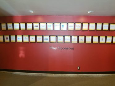 During Development this week, I had several projects that I was working on. One project that I pretty much completed solo was the sponsor wall. CRT is a non-profit, which means that we rely heavily on donations from patrons and companies to keep running. Ticket sales make up only about half of the money that it takes to keep the theatre running. As part of our thank-you to the people and companies that directly sponsor our productions, we put their names and/or logos in frames and hang them up on the wall that leads to our mainstage theater. It’s easily visible from the main entrance, and people have to walk past it to get into the theater itself. This year, the sponsor wall was my responsibility. My supervisor, Graham, made all of the images, but I printed them out, cut them down to fit the frames, framed them, and hung all of them up on the wall. I had to hammer in new nails for most of the frames, and for the top row, I had to hammer them in from on top of a stepladder. I’m pretty proud of this wall, and I like being able to see my handiwork whenever I walk into the theater.
