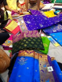 Shortly after I made it upstairs to check my phone and orient myself a bit, I was invited by the other interns/students on campus to go to town. I had a headache brought on by dehydration and exhaustion but I wanted to actively fight jet lag and so I said I would tag along. I made it downstairs and started running along with the rest of the group to catch up to Ratna, a CHRP staff member who was taking us into town that day. We rode rickshaws, bumping against the metal bars and speeding precariously past other vehicles, pedestrians, and animals before heading into a popular sari store. We climbed to the third floor, sat on mats, and were instantly showered in vibrant colors and intricate patterns. I bought my first sari at that store (pictures of which you will be able to see Week 2) and could not have been happier.