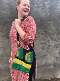 The final big project this week was working on the Etsy page for Helping Hands! Helping Hands is a CRHP project that teaches women marketable skills such as sewing, and products made as a part of that program are sold on campus, and all profits go straight to the Julia Hospital, the hospital on campus. There are a multitude of products ranging from sandals to sari bags, pillowcases, scrunchies, scarves, and more. Because there are so many products available, the IPM thought an Etsy page to be used in the U.S. would be an effective way to sell more inventory. I wrote the descriptions for the products, but descriptions are useless if there aren’t pictures – which is how I became an Etsy model! I wore a variety of scarves, scrunchies, and sari bags while the IPM took pictures which was the highlight of my week (in a lot of the pictures my face is beet red because I was laughing so hard). It was an entertaining pastime and something that I did not think I would be a part of at this internship, or any internship really.