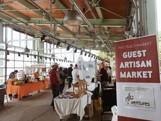 Ventures is a nonprofit organization which gives individuals from low-income backgrounds an opportunity to start their own entrepreneurial ventures. They offer business and marketing classes at a reduced rate and provide services, access to capital, mentorship and coaching to help individuals run successful businesses — or more accurately, microenterprises (a term I just learned, meaning a business that has five or fewer employees and requires less than $35,000 in initial capital). Ventures supports the idea that with rising poverty rates, the solution of giving individuals the tools to create their own businesses is both empowering and self-sustaining. Ventures provides services for 800+ clients every year. 99% of their clients are from low-income households, 65% are people of color, 32% are immigrants, and 71% are female. Along with this, Ventures also has a brick and mortar store in Pike Place Market where they sell the goods that their clients produce. This is where most of my projects will take place. As an Access to Markets Intern for Ventures, I will be assisting with the Incubation step of their process — helping clients to succeed once their business is up and running.