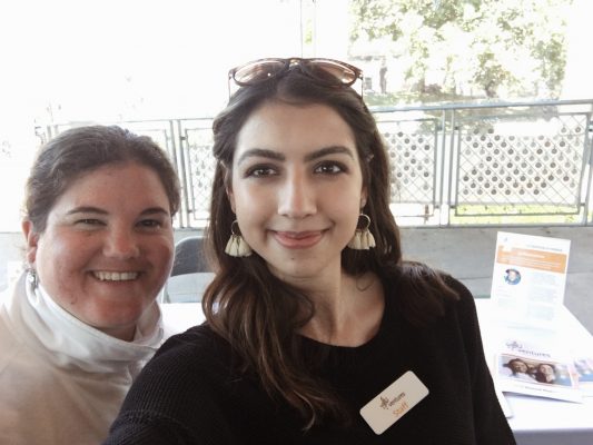 Sitting Behind the Ventures Information Table at the Guest Artisan Market with my Supervisor, Betsy