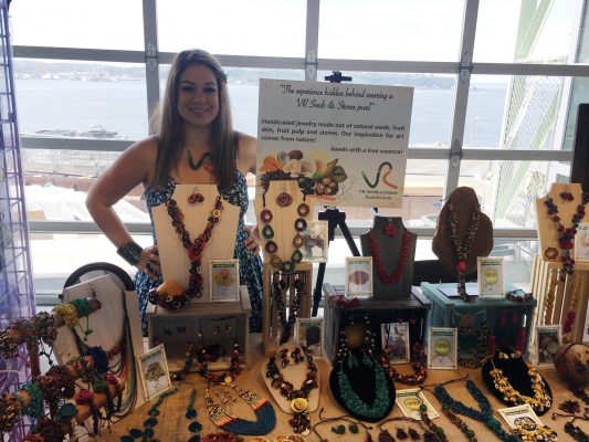 I enjoyed the diversity of products too – from jewelry to energy drinks, each client had something so unique to sell. One of my favorites is a client of ours who makes jewelry from seeds, coffee beans, dried fruit, nuts and coconut shells. She came to the US from Spain and wanted to start her own business. With limited resources and connections, Ventures provided her with the tools to start her own business selling her unique jewelry. Inspired by resources which her family in Columbia sends to her, she creates some of the most unique pieces I’ve ever seen.