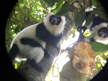 This week was more of the same with the Prelemur Simus team, one Follow each day. On Thursday the lemur we were following in the East 2 group joined with individuals from the North-West 1 group and some Varecia lemurs (Black and White Ruffed Lemurs) to eat at a Jackfruit tree! It is very unusual to see these two lemur species together, but the Jackfruits are ripening now and the lemurs go from tree to tree and eat the ripe ones. The Greater Bamboo Lemurs are smaller than the Black and White Ruffed Lemurs and waited for them to be finished at the Jackfruit tree before moving in to have their turn at the fruit.