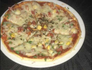 We had lunch at two different places because the first place we went to did not have much, and I did not want to eat fish. So Evan had fish, and I had pizza. It is not like pizza in America, but it was good anyway.