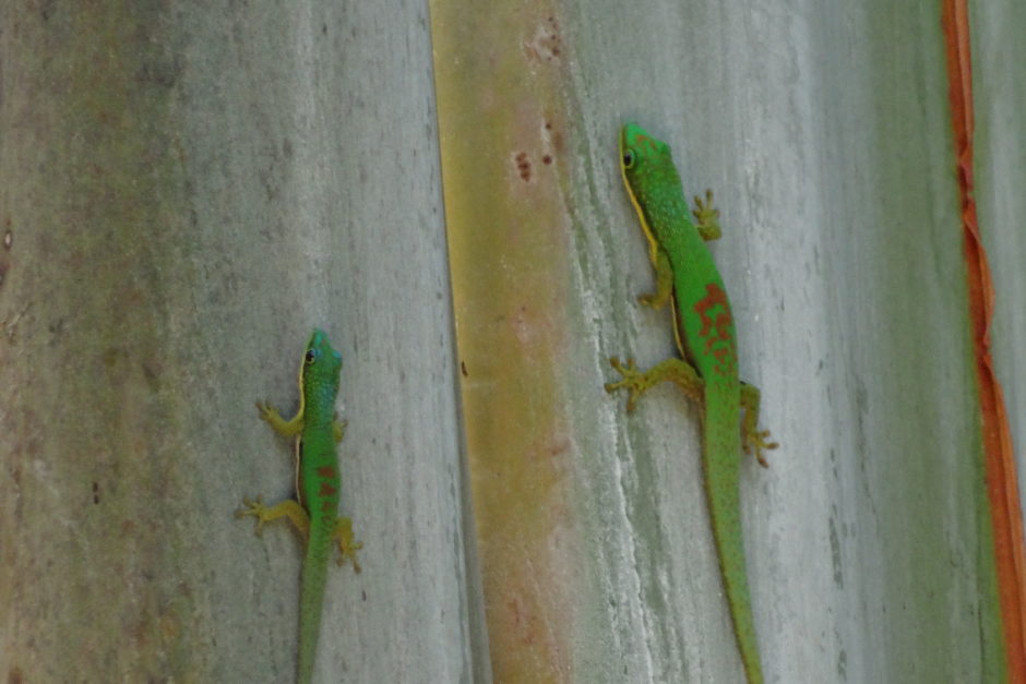 Day geckos on a Ravenala plant