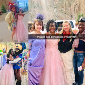 The Fourth of July is the biggest, most exciting day in Creede. Literally on July 3rd, I woke up and there was like, 100 more people here than there usually is walking around town. Then, I woke up on July 4th and when I walked outside, there was like 4 times as many people here as there were the day before! There were tons of vendors out selling food, ice cream, FUNNEL CAKE, there was a huge mining competition going on (YES -mining!), there were so many little cute toddlers running around playing catch with each other, fireworks and, of course, there was a big parade that the company of CRT was in! CRT created a float to commemorate and honor the life of a Colorado playwright by the name of Jeff Carey who left a huge, positive impact in so many lives in Creede. I was told he wrote a lot of the original plays for the KID Shows in Creede, most of which involved writing about pirates, princesses, and Zombies. So instead of dressing in Red, White, and Blue, for the parade, we dressed up as pirates, princesses, and zombies! It was so much fun. I got to ride in a float, throw candy, and princess wave to the cute little babies on the street. The parade also consisted of horses and my personal favorite, a float full of puppies.
