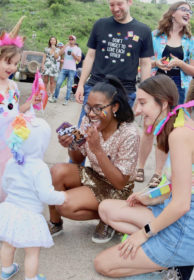The Pride celebration started early with breakfast and a church service. After that, there was a big parade! There were many people from the community who came out to be a part of the parade with us, and to watch the parade; it was so beautiful. In my last blog, I briefly touched upon how my favorite part of the Fourth of July parade was the puppy float, well, this time, in the Pride parade, I actually got to ride ON the puppy float!!! I was so in love.