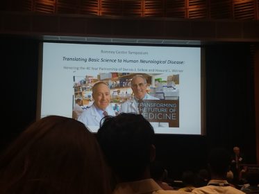 The co-directors of the Ann Romney center are Dr. Howard L. Weiner and Dr. David J. Selkoe. To celebrate their long history together, the symposium organizers invited scientists who have worked with the directors to present their research. Without the neurobiology elective I happened to take last year (thanks, Barbara), I wouldn’t have had a prayer of comprehending what was going on. As it was, I actually understood the research that was being presented by the world’s leading experts on Alzheimer’s, Parkinson’s, and multiple sclerosis!
