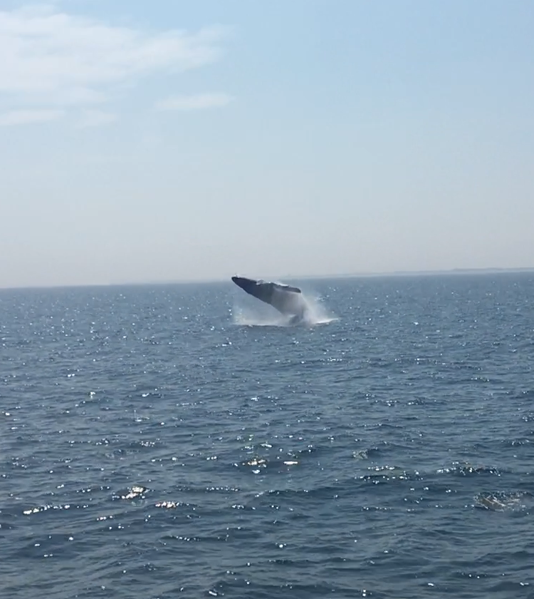 These kind of small town celebrations remind me of where I’m from, they’re quaint and cute but a big deal to anyone in the local area and everyone comes out. The parade was mostly tractors and fire engines and the fireworks drew a huge crowd. Following the holiday and to kind of celebrate being half-way through everything with my supervisor, I thought we should go do something I really can’t do at home: whale watching. The tours for whale watching go out of two primary locations: Provincetown (on the cape) and Plymouth. We decided with the traffic on the cape it would be best to go out of Plymouth on our tour, early in the morning. It was an amazing tour and we saw three whales. The most active of these was a female humpback named Diablo. My supervisor recommended taking videos of the experience versus photos because the animals move so fast. That turned out to be sound advice and I got some amazing photos!