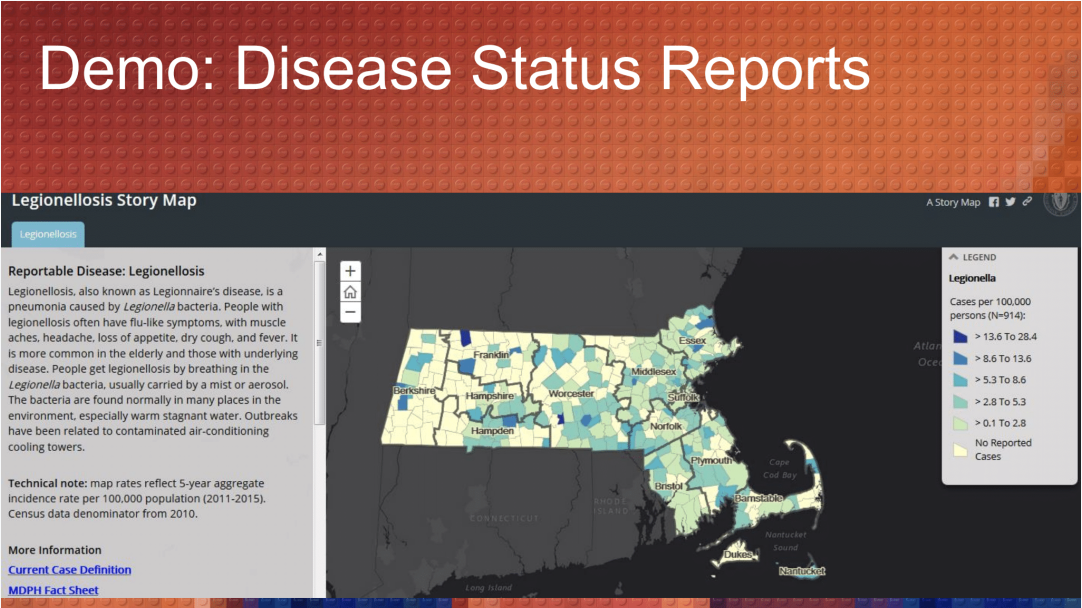 Aside from this report I worked on cleaning my database. Since I’ve been collecting all of the data I have via phone calls (and I usually only have one hand to type) things can get a little messy, disorganized, or incomplete. By cleaning the data I am setting standards in the way I code the spreadsheet or making the responses fit into their respective categories. This will help those after me understand what I was doing if they were to look at my work, and it makes uploading the data into the Story Map software much easier. The next portion of my week was spent learning how to navigate and build Story Map’s themselves. To use this software well, one has to complete a specific training. Fortunately, the Office of Integrated Surveillance and Informatics Services was willing to send me all the training materials and the held a webinar with me to go over some of the key features.