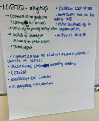 My blog last week was delayed due to a personal emergency, so this post will combine my second and third week. All Counselor Training was a great success and I was very busy getting to know all of the Youth Leaders and hearing them brainstorm their fantastic workshop ideas. Some topics included Empathy 101, LGBTQ+ History, Decolonizing Gender & Sexuality, and Body Positivity and Language, but the Youth Leaders have many more workshop outlines in the mix.