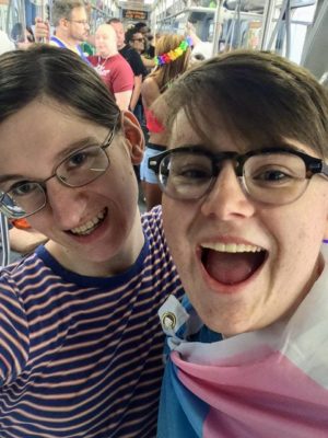 Marching in the parade was amazing, it was so affirming as a transgender person to hear and see people cheer for me as I proudly walked wearing the trans flag as a cape. It was absolutely wonderful to see young kiddos, older folks, and families all together in support, as many queer people have to seek out chosen family. The energy was amazing as we zigzagged through the historic gay neighborhood, Boystown with the 3 miles or so of the parade route. Being transgender is so often a part of my identity that I’m hesitant to display publicly, so it meant a lot to be supported while being explicitly trans.