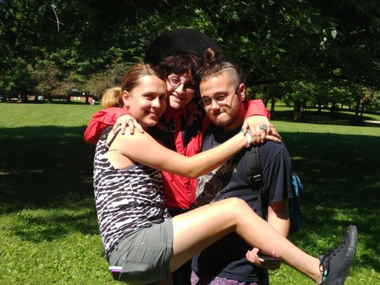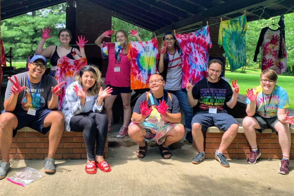 As an ops counselor, part of my role is to lead activities. I led tie dye with Eli, as can be seen on my feature photo. Other counselors led a hike to a really beautiful part of camp with water to wade in. Thankfully the bugs at camp weren’t too bad. Swimming is a very important part of camp, as it is one of the few opportunities for gender-affirming swimming. Many campers and counselors wore binders, a compression garment for transmasculine folks. Action Camp has a body positive dress code in which campers can wear whatever they want as long as their nipples, genitals, and butts are covered. This means that campers can swim without a shirt as long as their nipples are covered, regardless of the type of chest they have.