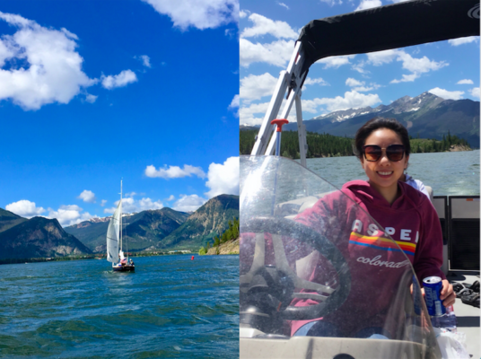 Last weekend, I traveled with Alicia and her boyfriend Alex to a beautiful mountain town Breckenridge in Colorado. I did not feel awkward at all when I started picking up my role as a “lightbulb” (the Chinese slang meaning “the third wheel”). Really, not at all! On Sunday, Alex’s family invited us to go boating on Lake Dillon. The scenery was so pretty that I couldn’t stop myself from taking pictures. We also had so much fun taking the Breckenridge gondola and going down the alpine slide.