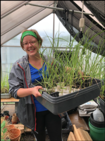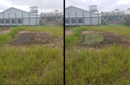 When we weren’t working in the lab, Lindsey and I got to spend some more time working at the Port Royal Sound Foundation. This week, our task was restoring spartina grass to the salt marsh. This work entailed trudging ankle-deep through the smelly mud to rake back layers of dead grass in order to plant new grass- aided of course by the many, many crabs I mentioned in my previous post. This is part of a program known as Seeds to Shoreline, in which elementary schools take seeds gathered from plants, start their growth, and then plant them again in an effort to bolster salt marsh ecosystems. This year, the students unfortunately could not be a part of this final step, but I am proud to be a part of this program that engages young kids with their environment and encourages them to care about the health of the world around them.