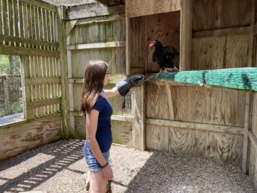 The last thing I did this week was handle and present some of our raptors to visitors, including Tigerhawk, our Peregrine Falcon. We are working on getting Tigerhawk used to being on a glove along with being touched. We are essentially taming Tigerhawk so we can use him for programs when he is old enough and well-trained.