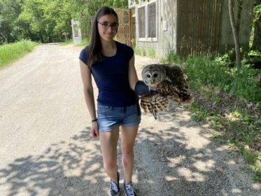 This week I spent a lot of time handling almost all of the raptors we have on-site. I really enjoy handling them. I learn something new about each raptor we have on-site each day. I learned how to hold each raptor in the following order: Omaha the American Kestrel, Little Horn the Eastern Screech Owl, Serelle the American Kestrel, Zorro the Gyrfalcon, Boreas the Red-Tailed Hawk, Wannago the Great Horned Owl, Fennamare the Barn Owl, Aura the Turkey Vulture, Saguaro the Harris’s Hawk, Duchess the other Great Horned Owl, Cypress the Barred Owl, and Killy the American Kestrel. Each bird is very different from one another and they all have their own personalities. The behavior and personalities of each raptor help us determine whether or not they are fit to take on programs along with how well they are trained.