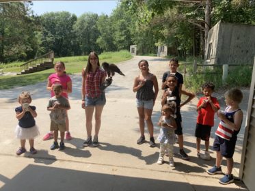 We ended the week with an event called Family Day. This event will occur on the first Saturday of every month now until it gets too cold. This is an opportunity for families to visit the Iowa Raptor Project and learn about the birds. We had snow cones, lemonade, and we brought out three of our raptors. Aura and Saguaro were attached to perches in the field while we held Tigerhawk. Aura is our Turkey Vulture who was found 30 years ago in a snowbank and rescued. She has been with us ever since. She is fully flighted and in great health. I had not gotten the opportunity to handle Aura until this event, which was another huge milestone for me. I learned more about Aura and her personality when I handled her before and after the event. A fun fact I learned about Turkey Vultures is they poop on their feet to cool themselves off during the summer months. Due to this adaptation, they are pretty stinky this time of year. Saguaro is our Harris’s Hawk who was used as a falconer’s bird. Falconry is when people use birds to hunt, similar to how dogs are used for hunting. To be a good falconer, the relationship with your bird is significant. Saguaro did not have a good relationship with her falconer, so she was given the Raptor Project. Saguaro is fully flighted and healthy. Both of these raptors are humanly imprinted, which means they rely on humans to survive, which is why they cannot be released. I fed Tigerhawk on the glove in the morning, which was another milestone of mine, and I presented him to all of our visitors throughout the day. This event could have been better if it was broadcasted to more people, but the people who did arrive enjoyed themselves.