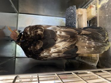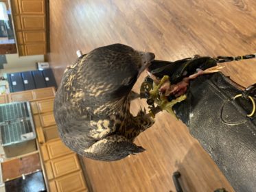 We recently got a Golden Eagle from Bramble Zoo in South Dakota. The first thing we had to do with the eagle was brought it to the vet. This eagle got lead poisoning and ran into electrical lines, fracturing her elbow in two places. For the past four months, this eagle has been in rehab at the zoo. The zoo decided to give us the eagle for additional rehabilitation. We took it to the vet to see how the fracture was healing and learned that she is developing arthritis in her elbow, which will eventually cause it to lock in a certain position making the eagle unable to fly. Due to this tragic news, we will no longer be rehabilitating the eagle. Instead, we are going to train the eagle and use her for education. It will be many months before the eagle will be trained and placed in a mew for guests to see. She is currently in a flight cage where no guests can see her, so her stress levels stay low while her wing is healing. When she was brought to us, we were told she was male, but we have concluded she is female due to her weight. This will be a long process for the eagle, and I wish her all the best. I learned a lot from this interaction.