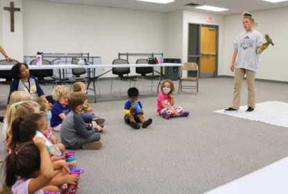 Just as we returned from the programs, a group of individuals from The Arc of Southwest Iowa were waiting. The Arc is a place for people with disabilities of all sorts, making the program a challenge for us. The group had scheduled a program with us, but it was not on the schedule. Even though this was a surprise to us, we could present a couple of raptors to them. We talked about Omaha, Saguaro, and Zorro, whom they really enjoyed seeing. This experience tested our responsibility and time management skills. We were able to balance the program with putting the birds away and cleaning out all the boxes after all of the programs. Just as we started doing paperwork, the wildlife camp showed up asking to see a raptor. I presented Zorro to the group for about half an hour, and they really appreciated it. We choose to present Zorro to spontaneous groups because he is one of our most human imprinted raptors and he loves being around people. Due to this, he is very sweet and easy to grab out of his mew because he would rather be around people than on his own.